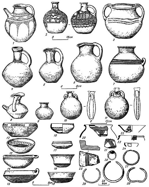 При этом необходимо также отметить, что у нас вызывает сомнение возможность разделить на два периода ранние слои Кучуктепе. Нам представляется, что более правильным было бы объединение двух комплексов: Кучук I и Кучук II в единый (табл. LXIX).
