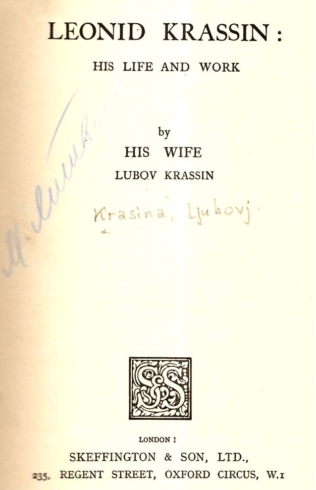 Запрещенная в СССР книга вдовы Красина из библиотеки М. Литвинова. Титульный лист