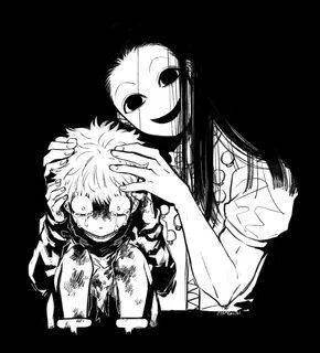 В белых одеждах, сгорбленное, оно напоминало человека, вот только движения, которыми оно гладило совсем мелкого парнишку, были неестественно ломаными и дёргаными. Жуть и полный мрачняк!