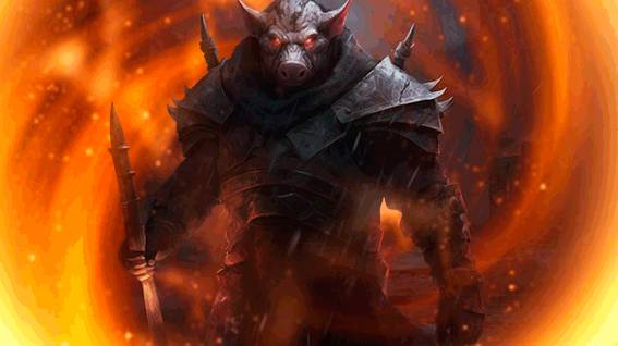 С неба посыпались громадные капли, которые разбивали каменный пол и собирались в фигуры апокалиптичного воинства закованных в чёрные латы свинорылых воителей.