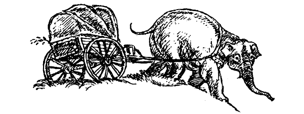 — Вот что я тебе скажу, — возвестила она, выдыхая облака едкого серого дыма. — Пора тебе в путь, юноша. Впереди еще долго тянется ровная пустошь, гладкая, как яйцо, не больно-то подходящее место, чтобы спрятать слона. А потому слушай мое предложение. Как пройдешь по этой дороге километров десять-двенадцать, будет поворот направо. Не такой уж удобный проселок, зато он проходит по лощинам, там вас будет труднее заметить. Так вот, еще через километров тридцать проселок пересечет железную дорогу, понял? Сразу после того — развилка. Пойдешь налево, и вскоре тебе встретится трактир «Единорог и Лира», фамилия владельца — Филигри. Хозяева — милейшие люди во всей округе, и они обожают животных. Думаю, они позволят тебе побыть там, пока вас не перестанут искать. Скажешь, что тебя послала Черная Нелл.