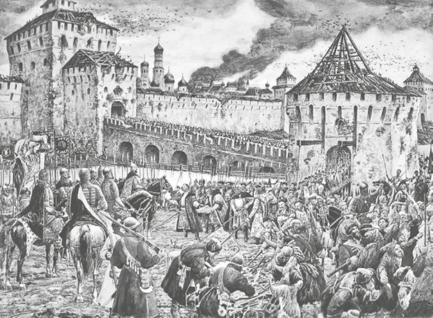 Много, много страданий вынесла тогда Россия. Земля была разорена и разграблена. Многие города были сожжены дотла, небоярские усадьбы сровнены с землею. Сама Москва, поруганная поляками, являла собою печальное пепелище. По разоренной земле, как обрывки грозовых туч, рыскали шайки разбойников, буйных казаков, жадные до наживы польские банды и дожигали недожженное, разоряли остатки, грабили нищету. В то же время атаман Заруцкий с Мариною, провозгласив нового самозванца (Ивашку, малолетнего сына Тушинского вора), грозил привести на Москву турок и татар; незамиренная Польша и враждующая Швеция громили Русь на окраинах.