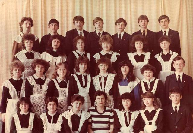 Фотку приведу для примера. Вот такие среднестатистические вьюноши и девушки на встречу с великой мной и пришли. Только фартуки у девчонок были чёрные, повседневные.