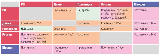 Таким образом, Швеция в союзе с Голландией и Францией действительно смогла сесть в устьях основных балтийских рек и стала гегемоном на балтийском побережье. Однако к 1660-м такой рост шведского могущества оттолкнул от Стокгольма Голландию, и та стала всемерно поддерживать Данию. Как мы знаем, свято место пусто не бывает, и Амстердам в Швеции заменило представительство Лондона, который был злейшим врагом Голландии. Надо понимать, что и для Англии, и для Голландии балтийская торговля представляла особую ценность, оттуда они черпали строительный материал для кораблей, пеньку, лен, смолу, железо и т. д., то есть товары стратегического назначения. И главным они считали баланс сил на Балтике, то есть чтобы никто из стран этого региона не усилился настолько, чтобы бросить вызов морским державам.