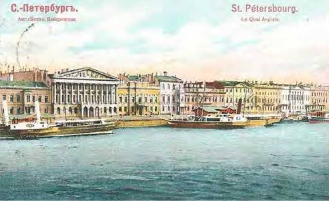 Английская набережная, Санкт-Петербург. В XVIII веке называлась Береговая нижняя набережная. Примерно с 1730-х годов именно здесь начали селиться английские купцы.