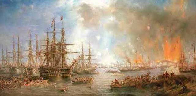 Художник Джон Вильсон Кармайкл. Бомбардировка Свеаборга 9 августа 1855 г. Масло, холст. 1858 г. Национальный морской музей, Гринвич, Лондон