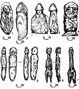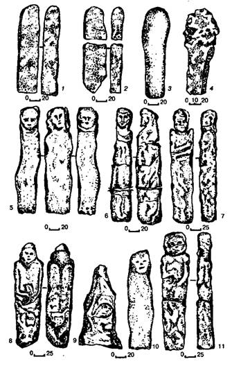 Из третьей таблицы некоторое сходство со Збручским .идолом (по столбовидности и типу шляпы) имеет только изваяние из Вологодской области (хранится в Новгородском музее), но его датировка и культурно-этническая принадлежность сами требуют определения.