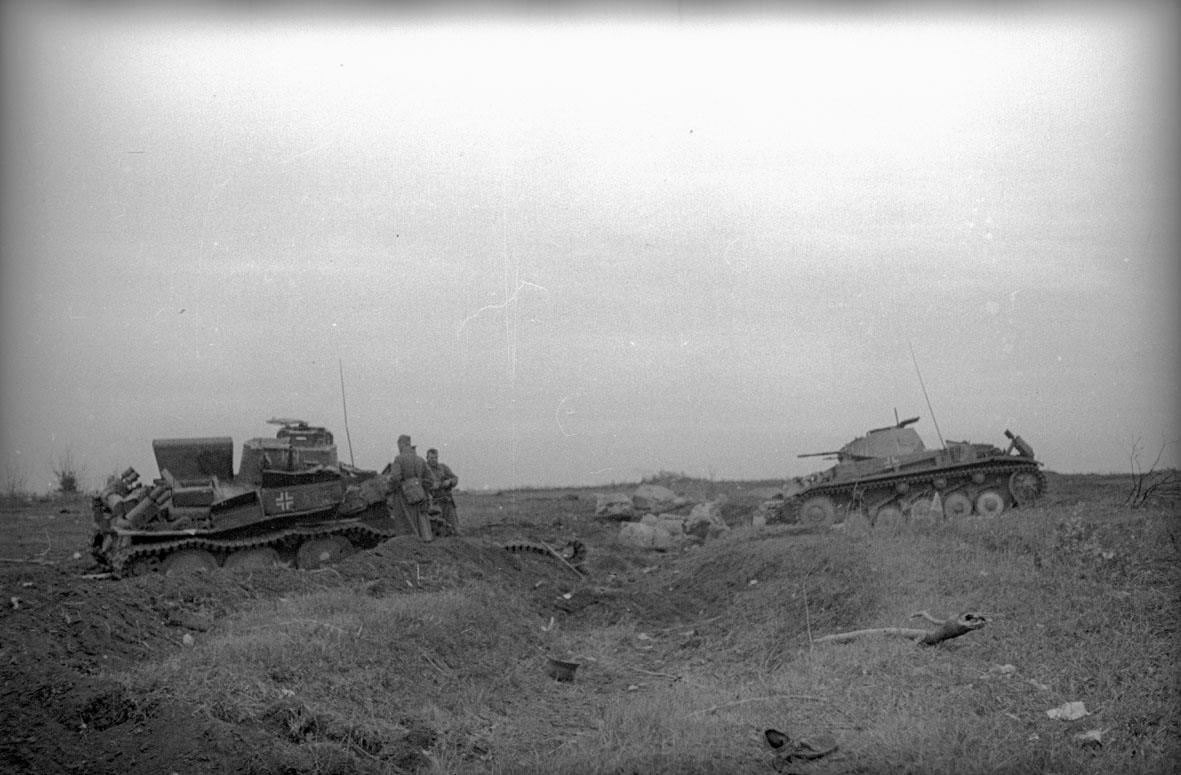 Наши бойцы у подбитых немецких танков. То самое поле под Хандрово. (Фото замечательного военкора Александра Васильевича Устинова.)