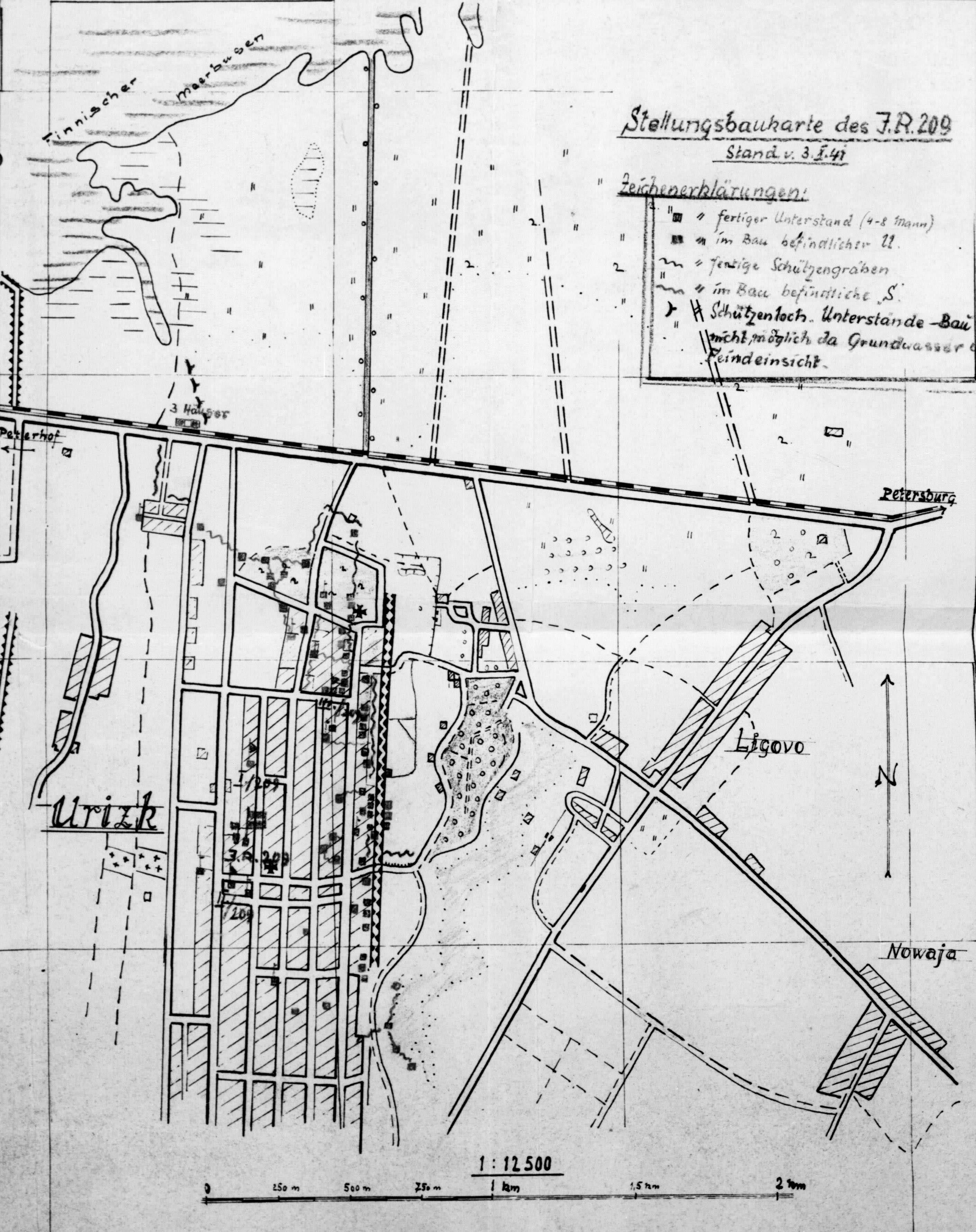 Передовые позиции немцев у Петергофского шоссе (немецкая карта)