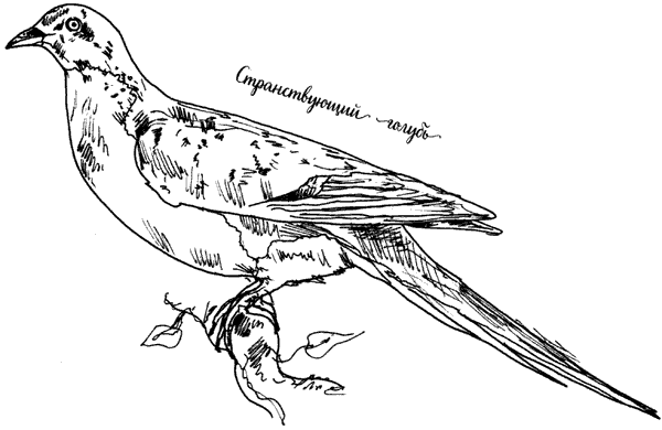 В XVIII веке в Америке был широко распространен один вид птиц, который уже исчез с лица Земли. Миллиарды странствующих голубей — элегантных серых птиц с красноватой грудкой — пролетали огромными стаями над новой страной, над головами недавно прибывших европейцев. Религиозный моралист Коттон Мэзер, пользовавшийся значительным влиянием в колониальном Бостоне, писал, что небо над городом часами могло быть заполнено пролетающими мимо стаями, так много их было. Когда птицы устраивались на ночлег в кронах деревьев, ветви иной раз ломались под их весом. Такой многочисленной популяции требовалось много пищи, и в зависимости от ее наличия количество особей сильно менялось от года к году. Когда люди начали вырубать лес, чтобы освободить место под поля и застройки, птицам добывать пропитание стало сложнее. Однако удар по странствующим голубям нанесла вовсе не вырубка леса, а охота. Эти птицы пришлись очень по вкусу первопоселенцам.