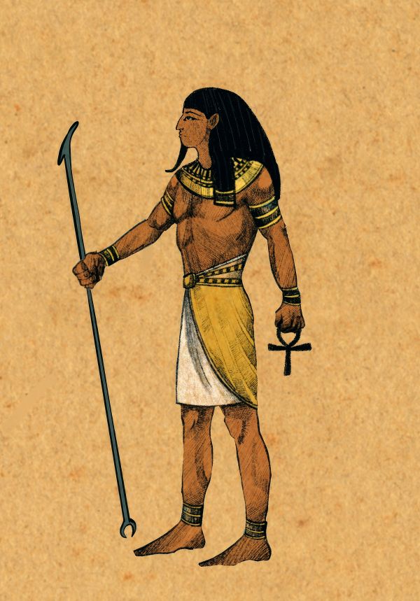 Иллюстрация статуи Атума в двойной короне Египта. Луксорский музей