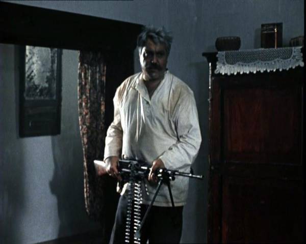 Один из главных героев кинофильма «Белое солнце пустыни» тоже брал в руки пулемет, и фразу сказал по случаю…