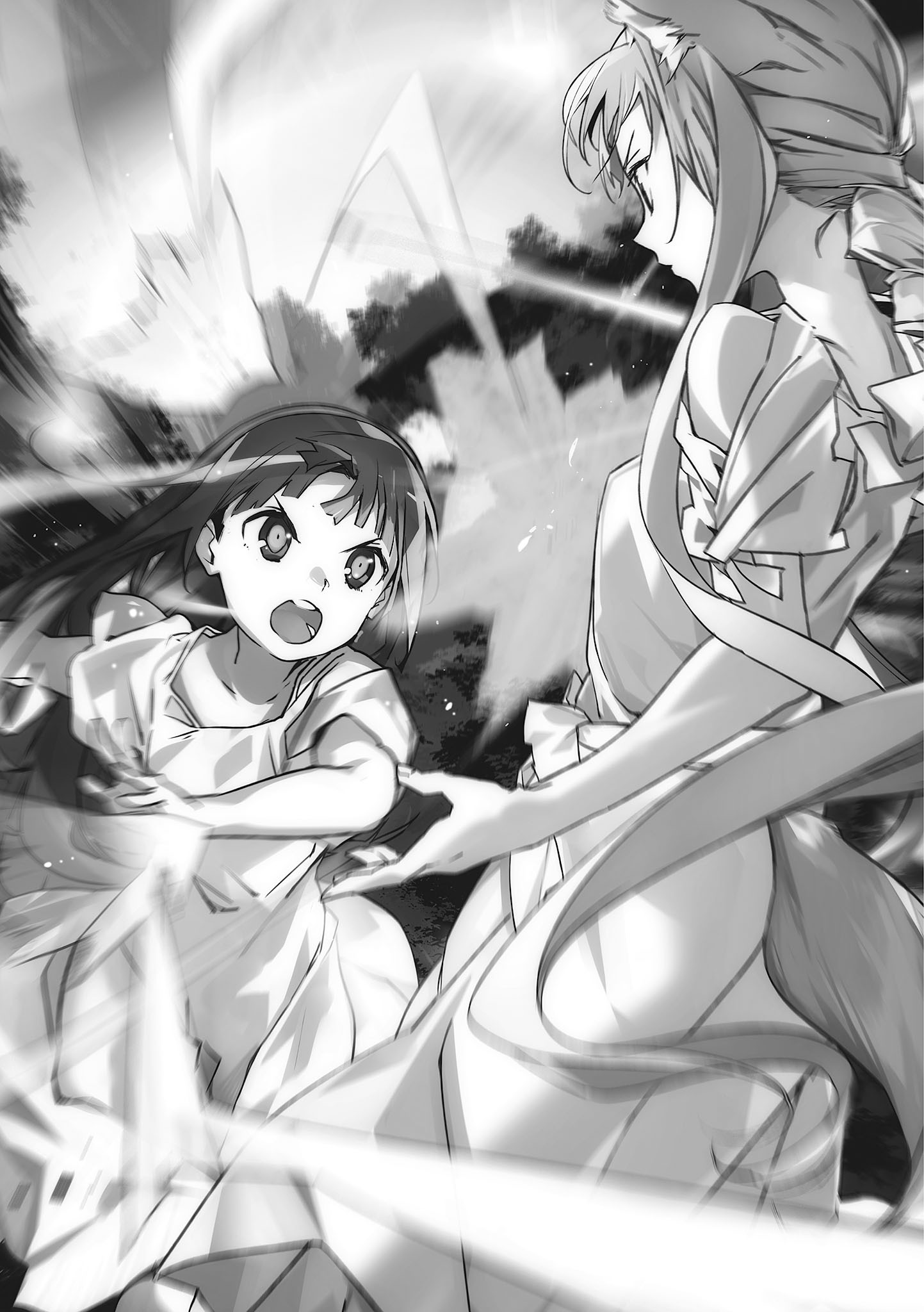 Новички в VRMMO часто заносят меч задолго до удара. Иногда так делать полезно, но в подавляющем большинстве случаев атака становится намного быстрее и сильнее, если соединить замах и удар в одно непрерывное движение. Юи уже в совершенстве усвоила это правило, и Алисе даже пришлось отступить на полшага назад, чтобы заблокировать её удар.