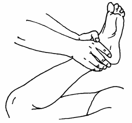 Движения пальцев ног проводятся следующим образом: массируемый принимает положение лежа на спине, массажист одной рукой обхватывает стопу, другой выполняет поочередное сгибание и разгибание каждого пальца.