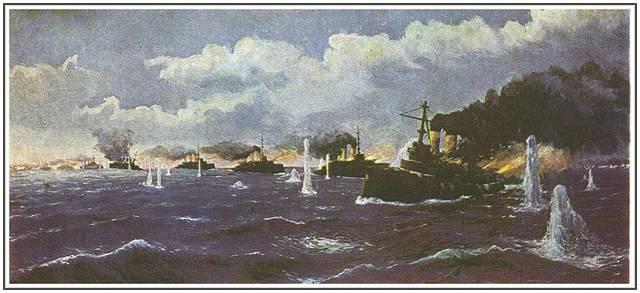 Иессен еще раз посмотрел на идущие позади четыре русских броненосца. Концевой «Наварин» едва поспевал за новыми кораблями, отчаянно дымя тремя трубами. Четвертая труба превратилась в жалкий огрызок, а для тихоходного броненосца с низким бортом и скверной мореходностью такое повреждение существенно, и долго держать 12 узлов старый корабль вряд ли сможет. Но хоть противник у него слабее прочих — итальянской постройки, «броненосец 2-го класса», или «броненосец для бедных стран», как их язвительно именовали порой в газетах.