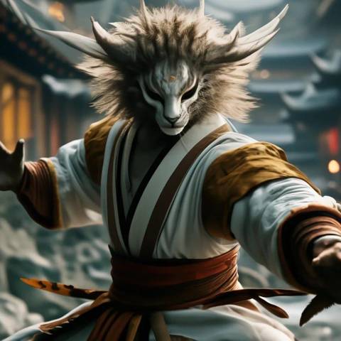 — Не переживай, и не оправдывайся, если я говорю, что есть куда стремится, значит так оно и есть. Но ты молодец, быстро растёшь. А с этим парнем, я сражусь один на один. — пошёл вперёд, к монстру получившемуся после слияния остатков живых монстриков. Передо мной стоял кун-фу кот или рысь, не понять кто именно, одет в бело золотой халат, перетянутый поясом.