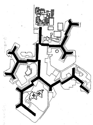 Заметим: речь идет о городе как целом, без поквартальной его организации, но сами опасения авторов переписки говорят недвусмысленно о том, что общественная организация некогда была, и именно ее возрождения через недозволенные «гетерии» (политические клубы) они не хотят допустить. Это, разумеется, поздняя история относительно истории жилища в городе, хотя и развертывалась она почти две тысячи лет назад. Однако иногда идти назад в историческом поиске наиболее целесообразно, так как мы понимаем, что надлежит искать в гораздо более глубокой древности. И, действительно, при анализе планов городов, трудолюбиво реконструированных археологами, при чтении старых текстов мы обнаруживаем, что на протяжении всей почти истории Древнего Египта не квартальная, но районная система членения городского пространства господствует повсеместно. Это вполне понятно: район расчерченных кварталов, населенных рабами, окружен стеной и отгорожен от районов, населенных свободными горожанами; район, где располагались виллы царедворцев, обособлен и от второго.