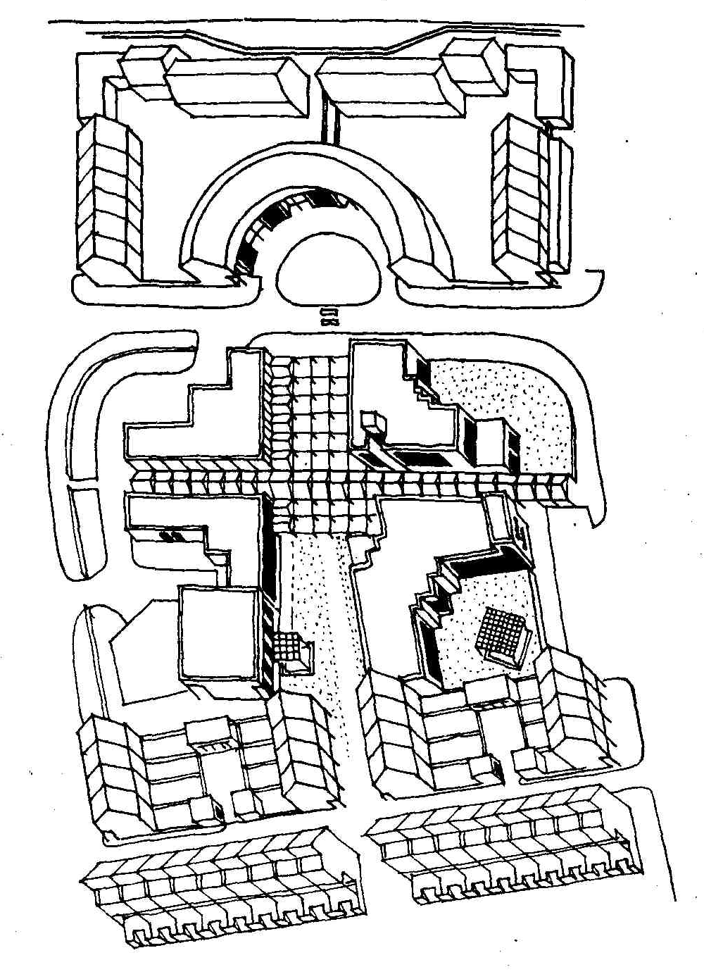 60. Р. Бофилл. Проект застройки квартала Сен-Кантен-ан-Ивлин в зоне Большого Парижа. 1970-е годы. Аксонометрия