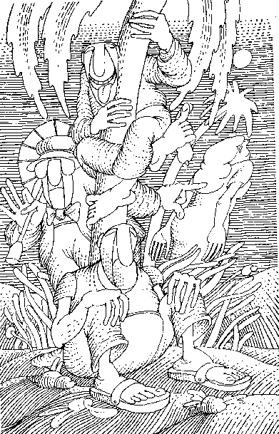 Ч. С Ч. (тянет к себе фолиант). Прошу вас… только на одну минуту… У меня все в голове вниз тормашками… (Пытается восстановить прежний порядок). Я ехал в поезде… у меня порвался ботинок… и я сводил его к парикмахеру… Может быть, я… а может быть, не я… может быть, почтальон или трубочист… (Вскакивает, кричит). Держи полицейского!