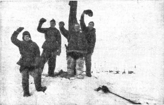 Четверо отважных. (П. П. Ширшов, Э. Т. Кренкель, И. Д. Папанин, Е. К. Федоров.)