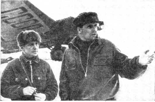 Погода хорошая, настроение тоже. Можно лететь! (Командир флагманского корабля М. В. Водопьянов и флагштурман Спирин.)