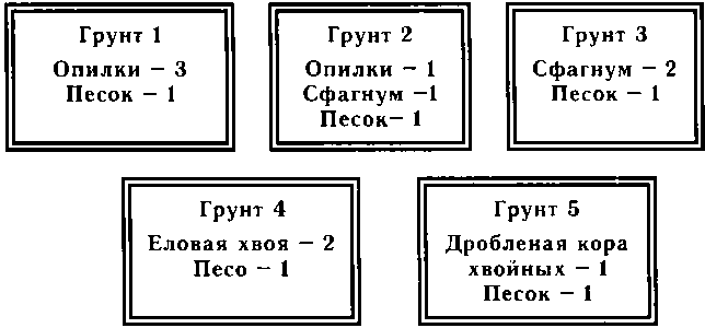 Ниже указаны оптимальные соотношения материалов в почвосмесях.