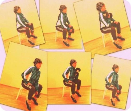 Исходное положение – сидя на надёжной опоре, снаряд за головой в согнутых руках.