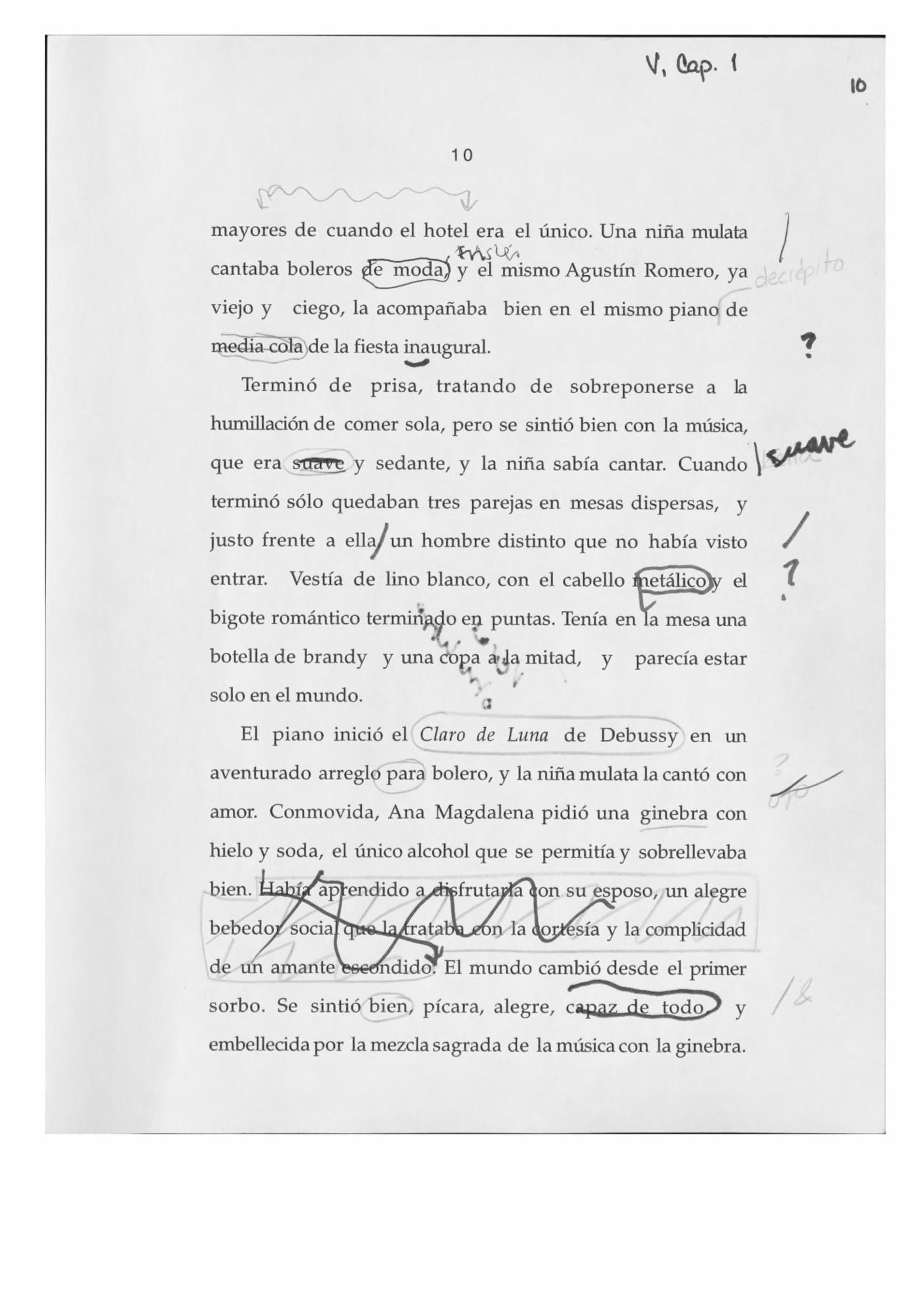 Отношения между автором и редактором — договор о доверии и уважении. Мне посчастливилось работать с Габриэлем Гарсиа Маркесом, и это было непрерывное упражнение в смирении, причем я исходил из того, что он сам сказал, когда Кармен Бальсельс передала мне трубку при нашей первой беседе: «Я хочу, чтобы ты критиковал меня как можно больше, потому что, поставив последнюю точку, к книге я больше не вернусь». В отношении настоящего издания я действовал как реставратор перед холстом великого мастера. Исходя из цифрового документа, сохраненного Моникой Алонсо, и противопоставляя его пятой версии, которую автор считал окончательной, я рассмотрел каждую его рукописную или продиктованную Монике пометку, каждое измененное или убранное слово, иногда фразу, каждый альтернативный вариант на полях, чтобы решить, включать их в текст для публикации или нет. Работа редактора, по моему глубокому убеждению, состоит не в том, чтобы изменить текст, а в том, чтобы сделать текст сильнее уже имеющимися на странице средствами. Это включает проверку и исправление фактических данных, от имен упоминаемых музыкантов или писателей до соответствия возраста героини хронологии повествования.