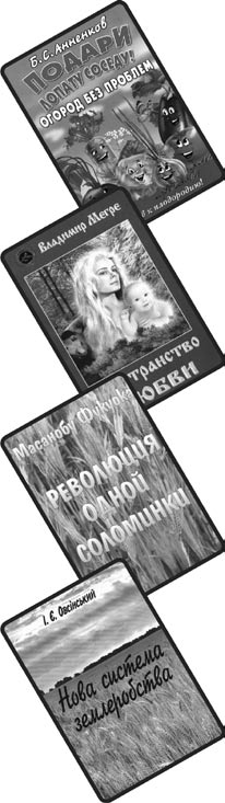 Серия книг Мегре В. Н. «Звенящие кедры России» о Человеке, Вселенной и силе Любви. В книге «Анастасия» собраны уникальные советы для дачников. Плоды, выращенные по этим советам способны излечить от любых заболеваний плоти, затормозить старение и увеличить умственные способности.
