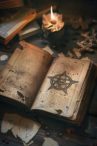 Пол пришел в движение и до того, как Арди успел хоть что-нибудь сообразить, прямо перед ним часть досок опустилась вниз и отъехала в сторону, открывая вид на небольшой тайник. Внутри, на истертом сукне, лежало несколько старинных блокнотов — какие-то с обложкой, другие без; пара колец среди которых лишь одно сохранило хоть какой-то намек на целостность; маленький свиток размером с указательным палец и здоровенная книга.