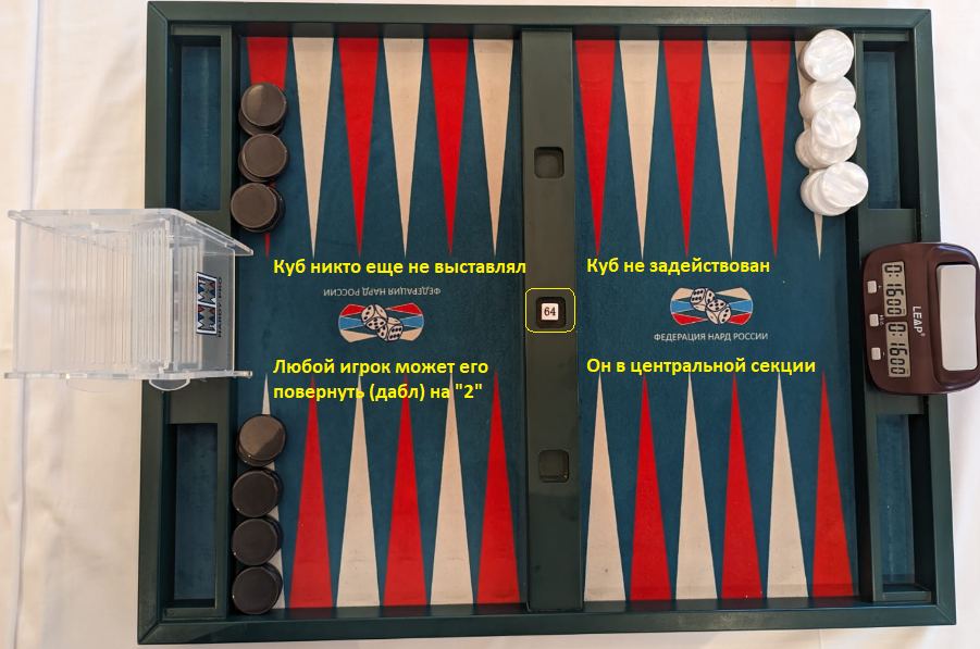 Бэкгаммон – очень широко распространенная игра во всем мире. И весь мир играет бэкгаммон с кубом удвоения. Вернее, так: его не играют без куба удвоения. И традиционно все используют термин «куб», пропуская слово «удвоения». И мы в дальнейшем везде будем писать просто куб. Это физически куб (чаще всего деревянный или пластиковый) с нанесенными на его грани числами 2 / 4 / 8 / 16 / 32 / 64. 6 граней, 6 чисел – 6 степеней двойки.