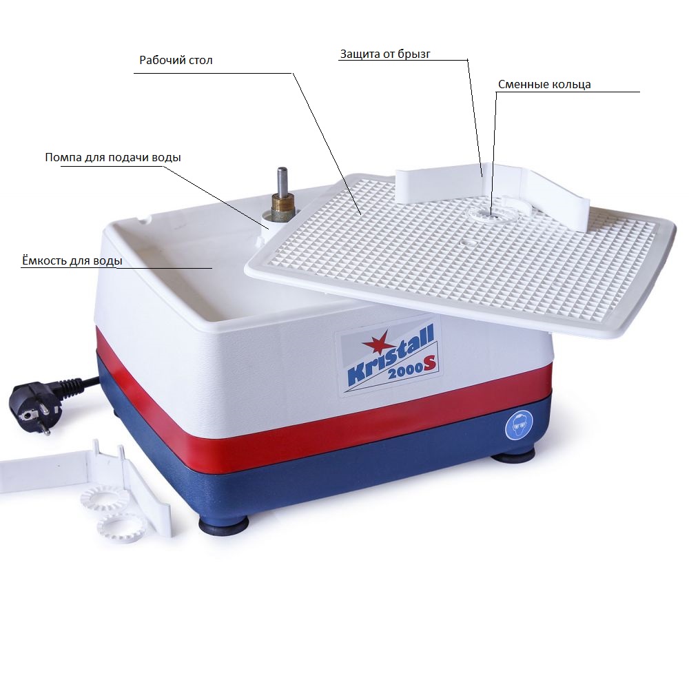 Встроенным насосом оснащена, например, шлифовальная машинка для обработки художественного стекла «Kristall 2000 S».