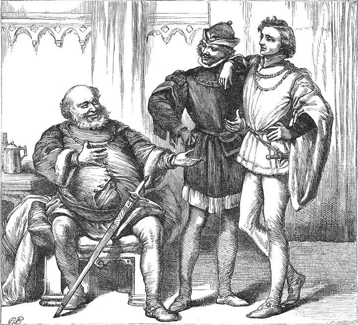 Фальстаф искренне любит Генриха, а вот отношение принца к простоватому немолодому дружку не столь однозначно. Он подшучивает над Фальстафом довольно язвительно, а порой и зло. Нельзя сказать, однако, что Фальстаф этого не замечает. Очень даже замечает, но на любимого друга не сердится. «Вечно у тебя на языке всякие ядовитые сравнения! Ей-богу, ты самый изобретательный, канальский, расчудесный принц на свете!» – говорит он в ответ на очередную шутку Генриха.