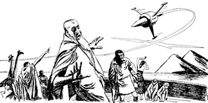 «Все… больше никаких речей», — приказал он сам себе, хотя с увлечением изучал писание. Все-таки он был солдатом, выполняющим приказ, а не философом. Итак, ему придется вести прицельный огонь на пределе своих боевых возможностей. Если он спикирует на цель, то пули попадут в трюмы и убьют животных. И он с ревом двигателей ринулся на Ковчег, борта которого выпирали из воды, всего лишь на несколько футов.