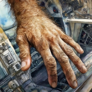 И тут он все-таки заметил перемену. Тыльная сторона его ладоней стала более волосатой. Обувь почему-то стала очень тесной и сковывала его движения. Когда он снял ботинки, проворные пальцы его ног удобно обхватили педали управления. Рой мельком заметил волосатое лицо с плоским носом, отражавшееся в приборной панели. Это существо рассмеялось, но смех прозвучал уже не по-человечески, он был подобен тявканью обезьяны.