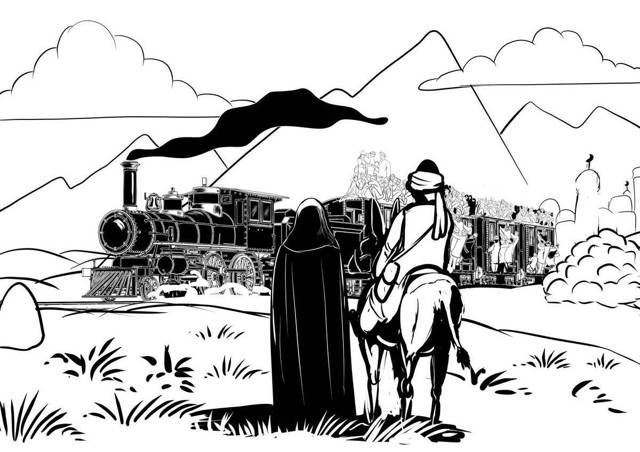 Паровоз пыхтел клубами черного дыма, медленно продвигаясь по узкой дороге. Людей вокруг — уйма. Они от самого Каспийского моря стояли…