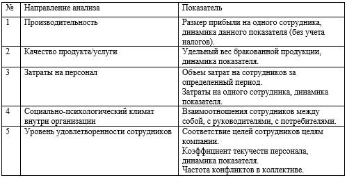 В таблице 1.1 рассмотрены направления анализа системы управления персоналом и показатели, соответствующие каждому направлению.