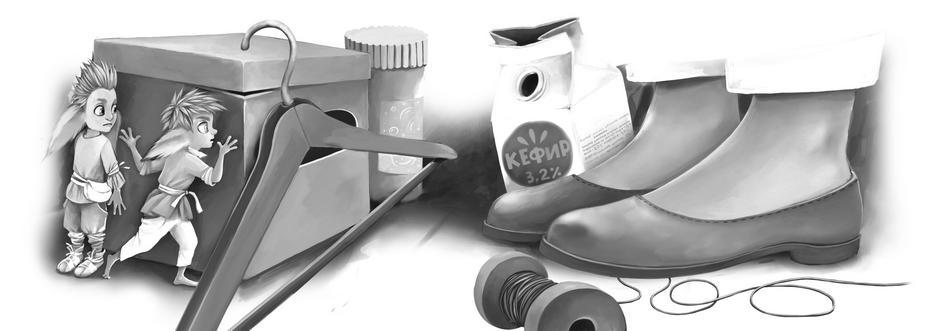 От ужаса я не мог оторвать взгляда от её толстопятых ног, обутых в плотные коричневые туфли. Если они из такого же материала, как те, что валялись здесь, на первом уровне, то должны быть очень твёрдыми. Даже твёрже, чем стены в моей комнате, сделанной из коробки из-под печенья. Тяжело, наверное, целые дома на ногах таскать. И как-то совсем не хотелось бы попасть вот под такой ботинок топтуна.