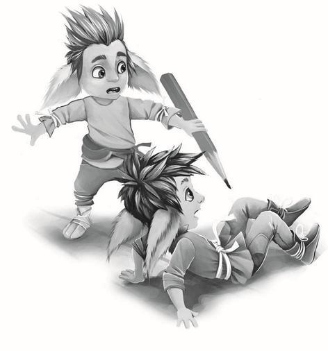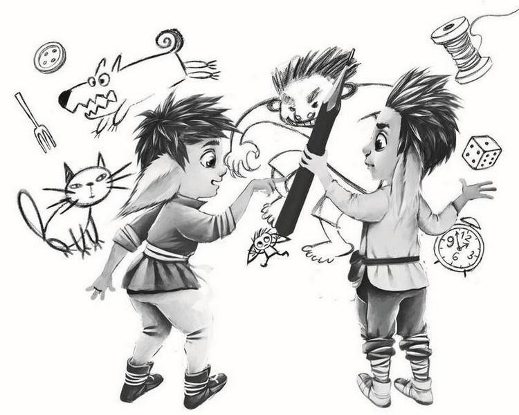 Вот огромное страшное существо пытается затоптать крошку-шуршастика. Существо – это, должно быть, топтун. Вон у него какие ноги толстопятые! А шуршастика я узнал по большим пушистым ушам, красивым выпуклым глазам и маленькому росту. А ещё по четырём пальцам на руках, если эти кривые чёрточки можно назвать пальцами. Вон у топтуна их пять нарисовано. Любой малыш знает, что у топтунов есть лишние пальцы. А ещё у них есть когти! Да-да, на каждом из пяти пальцев. Ужас какой… У шуршастиков пальчики мягкие, без всяких там наростов. И вообще, я считаю, что шуршастики – самые прекрасные существа, которые только могла создать природа. Всё что нужно – при них: и размер идеальный, и красота. Как же мне повезло, что я родился шуршастиком, а не топтуном или кем-нибудь из тех непонятных существ на картинках!
