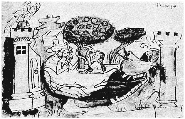 Существует еще одна особенность, указывающая на изначальную цельность – создание Евы из Адама. Очевидно, что сначала Адам был гермафродитом, иначе невозможно было бы создать из него женщину. Вероятно, здесь содержатся следы более древнего мифа, в котором изначальный человек был гермафродитом. Несомненно, этот более ранний миф подвергся изменениям в соответствии с односторонней патриархальной установкой иудеев, которая умаляла роль феминного элемента психики, сводя его лишь к ребру Адама. Разделение Адама на маскулинную и феминную составляющие представляет собой процесс, идущий параллельно и являющийся равноценным изгнанию из рая. Оба процесса имеют одно последствие: человек оказывается изгнан и отчужден от изначальной цельности.