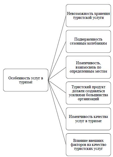 Важную роль в туристском маркетинге играют характеристики услуг, которые корректируют маркетинговую деятельность на предприятии. Они представлены на следующем рисунке 1.1.