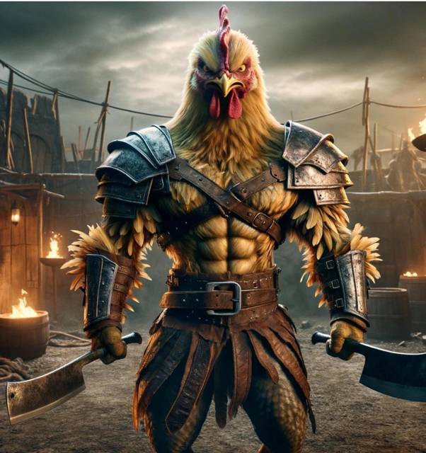 — Ко-коу! Как-кой храбрый человече! — заголосил боевой петух, поигрывая мускулатурой. — В ко-команду хочешь? К-команда или бой до смерти? Ко-коу! Сильные должны держаться вместе ради охоты на червяков…