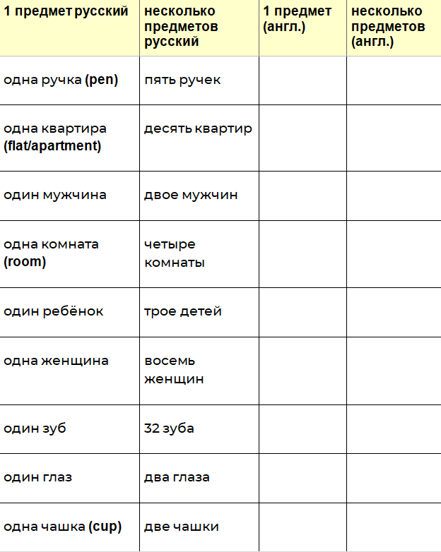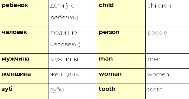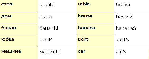 Как хорошо в английском: везде S. В русском то – Ы, то – А, то – И. Хорошая тема, и даже исключения тут хорошие. Что исключения? Да, они тут тоже есть и тоже совпадают с русским. Ну, некоторые совпадают.