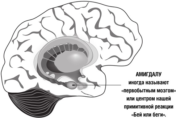 Контроль реакций на окружающий мир начинается с контроля над нашей амигдалой – двумя миндалевидными скоплениями серого вещества, расположенными глубоко в височных долях головного мозга. Амигдала позволяет нам обрабатывать воспоминания, принимать решения и управлять эмоциональными реакциями. С точки зрения выживания, это участок мозга, отвечающий за борьбу с ужасом, тревогой или первобытной агрессией, которые охватывают нас при столкновении с явной и реальной угрозой.