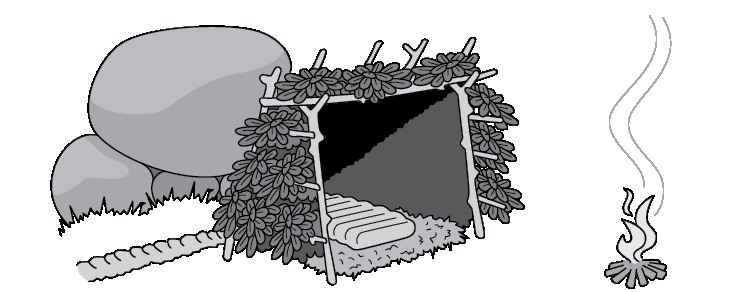 • Разводите костер в 1,5–2 метрах от входа – это позволит согреться и высохнуть и при этом не поджечь укрытие.