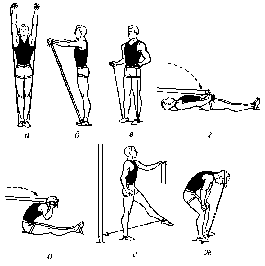 Натяжка бинта достигается за счет его наматывания на кисти. Чтобы увеличить сопротивление, его можно сложить вдвое, втрое, вчетверо. Для занятий рекомендуется иметь несколько резиновых бинтов, чтобы обеспечить достаточную нагрузку в упражнениях.