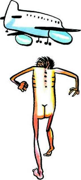 В международном аэропорту Лос-Анджелеса некий канадец из Страны Кленового Листа, разозленный тем, что ему не удалось купить билет до Австралии в Страну Кенгуру, разделся догола, выбежал на взлетное поле и забрался в нишу шасси самолета, совершавшего предвзлетное руление. Чудак мог выпасть из ниши шасси во время взлета самолета на скорости 320 километров в час и разбиться. Либо его могло засосать в двигатель. Либо его могло придавить механизмами шасси после взлета. Либо он точно замерз бы до смерти без одежды во время 15-часового полета на высоте более девяти километров. Но зачем все это? Подноготная драматична. На родине канадец разыскивался полицией как пропавший без вести и страдающий от маниакально-депрессивного расстройства. Пропавший без вести оказался верхом на колесе самолета.