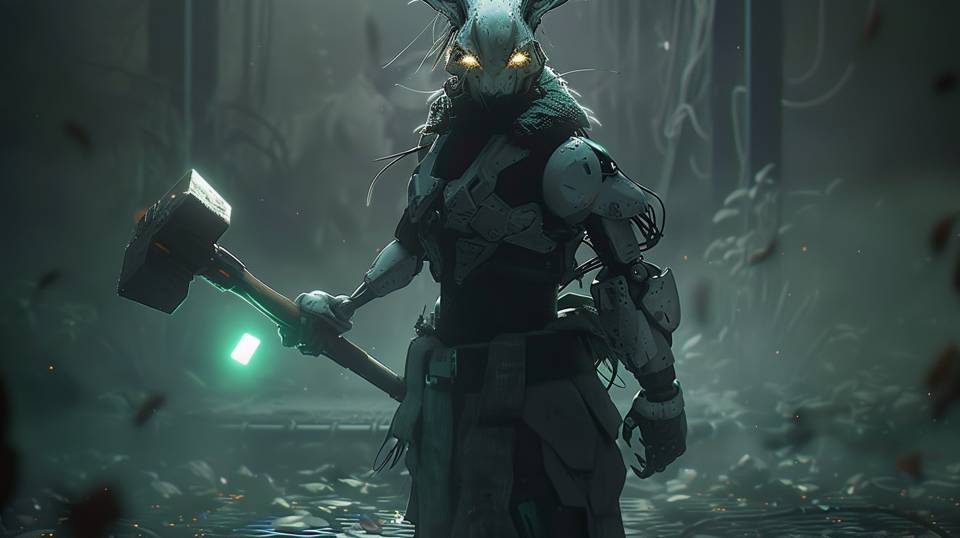 Одил из новых кроликов выбрал своей целью Сайну — тварь резко подскочила и зарядила от души огромной кувалдой. Экзоскелет удар выдержал, но инерцию никто не отменял, и механистка отправилась в долгий полёт.