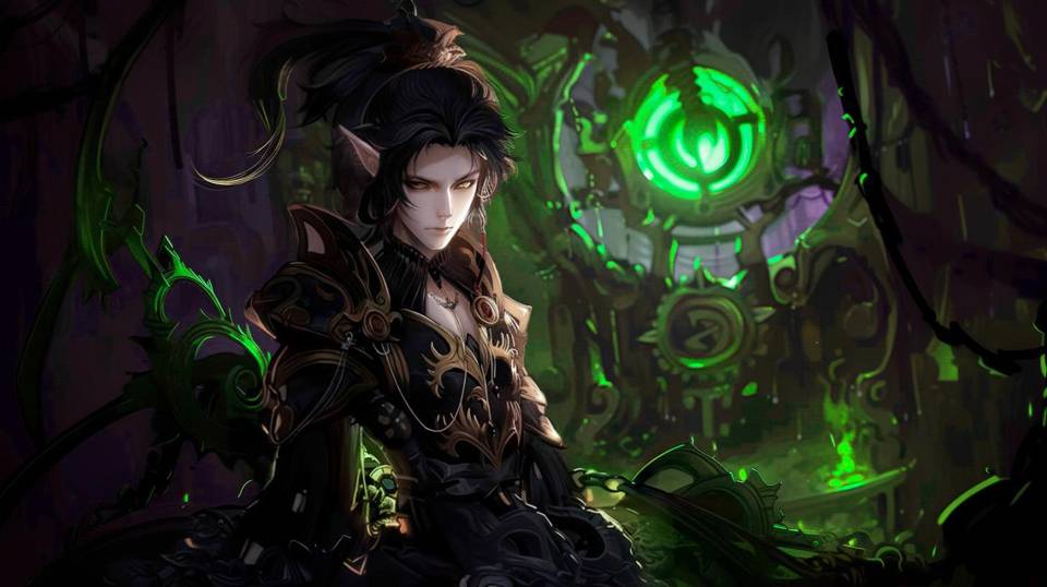 Вокруг нас включились десятки мониторов разных размеров, на которых был изображён ослепительно красивый эльфийский принц. Длинные чёрные волосы, изящная мантия со стальными растительными орнаментами, вплетённые в одежду зелёные ростки проводов были подсвечены некротической энергией.