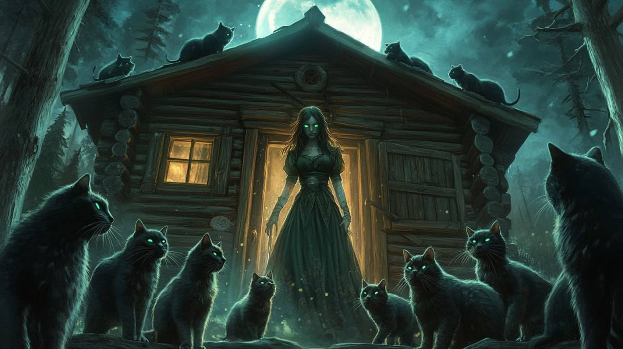 Коты последовали за своей хозяйкой. Зайдя за баню в полной темноте, Марья скинула платок. Седые длинные волнистые волосы тяжелыми прядями упали на землю. Лунный серебряный свет на секунду осветил улыбающиеся лицо Марьи. Она произнесла заклинание и закрыла глаза. Марья почувствовала яркий свет и тепло, разливающееся по всему телу.